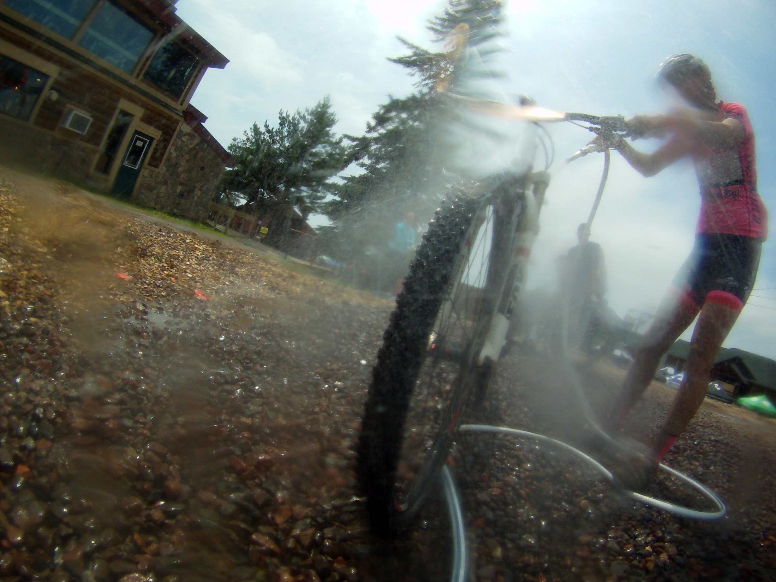 That was the last pavement we saw for the day as the course traversed numerous gravel roads and trails in northeastern Minnesota. As one point, around mile 20, the gravel roads took on a surreal appearance as the amount of dust in the air limited visibility to maybe 100 yards. My gloves, bike and kit were covered in a fine layer of tan dirt.
